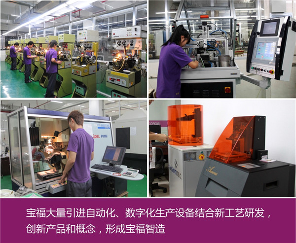 现今在工业4.0的新形势下,宝福加快了企业管理现代化、智能化的步伐,标准化建设工作转变为“标准化战略”,上升到企业战略发展的高度,作为企业可持续发展的必经途径。在标准工作中,宝福正逐渐改变过去的理论型制标思路,着眼创新应用型的新标准,将对行业新研发、市场新变化迅速做出反应,促进珠宝行业由“制造”向“智造”转型升级。近年来,宝福不断从德国、瑞士、意大利等国引进了3D建模、CNC车花、自动织链机等大量自动化、数字化的先进设备,结合自主研发的无焊对接、黄铂金焊接、烤彩等新工艺,创新产品概念,引领市场新潮流,可以说是行业高科技应用的领先企业。未来,宝福将努力由行业标准的参与者向主导者进步,致力以“宝福标准”影响同行企业乃至整个行业共建先进标准、规范发展,推动中国这个全球第一的珠宝大国在国际舞台上掌握话语权,提升地位和影响力。